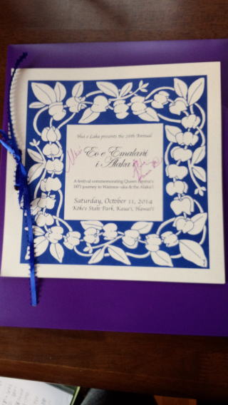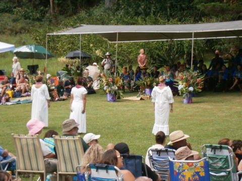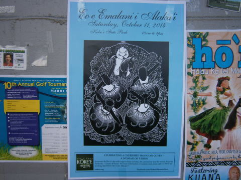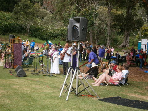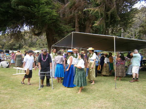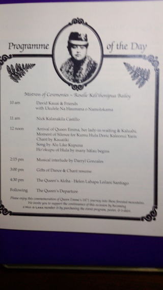 | フェスティバル会場(コケエ州立公園)クイーン・エマに関するオリ・カイ・ | フラカヒコ2曲・ホイを踊りました。 | ||