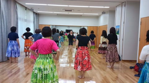 | 合同練習 2023年10月1日(日) 6月 Kumu Malia が来日された際、教室ワークで 習った「Kane'ohe」 この日は出演者全員でリハーサルしました。 |
