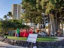 | 観光客の人達も、現地の方も皆さん暖かくて、メンバーは アイドル並みに写真に応じていました😊 8日(土)は午前中 自由行動でそれぞれK.C.Cに行った り、買い物したり泳いだりと楽しんでいたようです。 午後からはワイキキの中心、ビーチウオ‐クのステージで 4曲、夕方からは いよいよクヒオビーチのステージで3曲。 ステージから見る海の景色は素敵すぎて涙ぐんでる人達も。 |