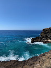 ・ハナウマ湾 ・潮吹き岩 ・ワイマナロビーチ(真っ白な パウダーの様な砂浜) ・カイルアタウン ・クアロアランチ(映画ジュラシックパークの撮影地) ◎9日夕方からはサンセットディナークルーズ お天気が良かったので美しい夕焼けが見れました。 ロブスターやステーキ、美味しかったです。 クヒオビーチから身に着けていた生レイもまだ美しく 私は 夕日がしずむ時にリボンと糸を抜いて、無事に全ての行事 を終える事が出来た事に感謝して海に帰しました。 ありがとうございました。 |