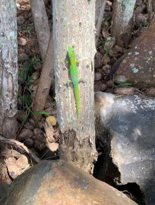 2019年4月ハワイ 「レイマカマエのレッスン」 この春3日間レイマカマエのレッスンに相原も参加出来、一緒に受講 しました。5月から指導者向け集中講座が始まり、襲名に向け相原が ハワイで年に数回学んで行く事になります。 今回も3日目にウルポヘイアウを訪れました。私達が「クム・マリア」 からレイマカマエとして教えて頂くことになった年に、クムマリアの ご主人が祈念に植樹して下さったハラの木が大きく成長している事に 驚きました。 そして私達が植えたククイの木々も大きく成長し、やさしい木陰を 作っていたので、、その下で皆でお弁当を食べました。 トカゲ(ゲコ)を発見。可愛い! 本当に目が水色で可愛かった。 人それぞれ? 夕暮れはカネオヘにあるお家の、スタジオみたいな大きな鏡の有る リビングで ハワイアン・ララバイを習って踊りました。 |