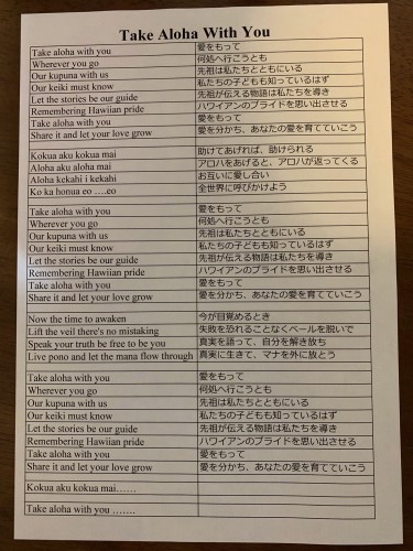 | Kumu Malia来日教室ワーク 2023年6月13日 私達の 教室ヴェヒノカウカに、長年教えを受けている Kumu HulaのMalia Helelaが来て下さいました。 全員で参加したいところですが、人数に限界が有るので やむなく50名の生徒で参加し、Kumuから直接指導を 受けました。 |