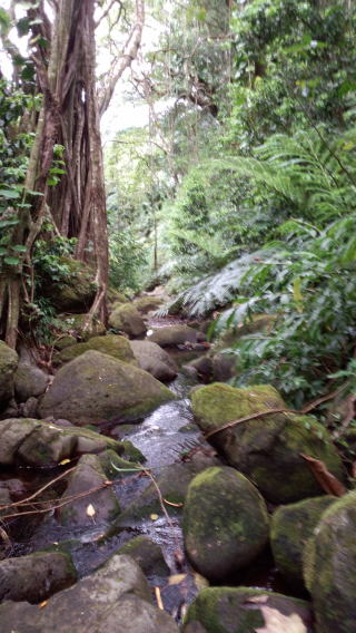 Hanu 'A'ala 昨年クム・マリアと一緒に「裏マノア」と呼ばれる 昔 高貴な方が身体を清めたというシークレットなマノアの泉に 行きました。 道なんて無くて 大きな倒木の上を皆で力を合わせて 乗り越え、ぬかるみに足を取られ、木の枝を掴んで何とか 歩き、川沿いの道を進んで行くと やがて小さな泉が有り クム・マリアがその冷たい泉に頭まで入り奥にある小さな 滝の水をココナッツのカップに入れて、それに海の塩を 入れて 私達の体にかけて清めて下さいました。 それから私達は 自然から感じた事全てをノートに書き留 めるという 静かな時を過ごしました。 もう少し歩いて平らな場所を見つけ めいめいが座る場所 を見つけ落ち着くとクムから Hanu 'A'alaのプリントが配ら れました。 歌詞の意味を教えて頂き クムと私達8人で この曲に振りをつけるという 初めての試みでした。 歌の内容そのままの まさにその場所で!! 次の日 CDを初めて聞いたら とても素敵なメロディ。 そして皆で作った 素敵な振り付け。 又1つ ヴェヒノカウカの財産が増えました。 喜びが後からジワジワとわいてきます。 皆で大切に踊っていきましょう。 明日は又 ハワイレッスンに出発です。 |