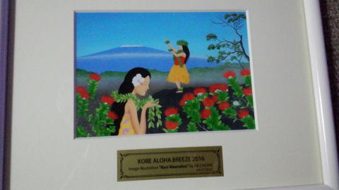 KOBE ALOHA BREEZE 2016 2016.5.21 いつも MAHALO先生のステージでは 素敵なレイをプレゼントして頂いていますが 今年は ヒロクメさんの 2016image art ”Nani Maunakea”の額入りの絵を頂きま した。ありがとうございます。そしてKe Aloha を1曲踊ることになっていましたが、なんと直前 3曲に増えて😊 楽しく踊らせて頂きましたが、 ヴェヒノカウカの OHANAフラが続き、私は 4曲連続で 汗が滝のように流れて目の中に 入って~😊 でも出演者皆で踊ることが出来て 幸せでした。 |