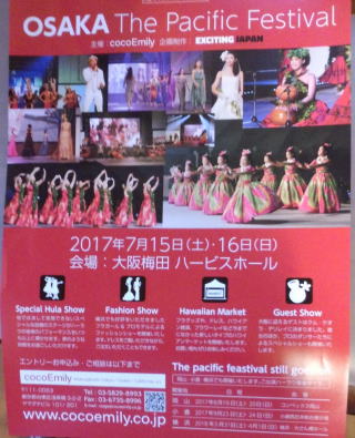 ![]() ![]() ![]() 2017年7月15日 大阪梅田ハービスホール The Pacific Festival に2チームで出演してきました。 光と映像!素晴らしいステージでした。 ハワイからのゲストや、ファッションショーも有り いつもと違うステージを楽しんできました。 |
