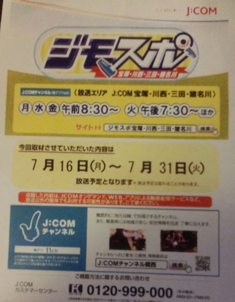 | J:COMチャンネル ジモスポ ヴェヒノカウカがテレビに出演します。 可愛いレポーターの方やディレクター、カメラマン やスタッフの方達が、私たちのレッスンスタジオに 来て下さり 少し緊張したけど、楽しい時間を 過ごしました。 7月16日(月)~7月31日(火)まで20分 ぐらい放送されます。 午前と午後の2回放送されますのでご覧に なって下さい。 地デジ11chです。 |