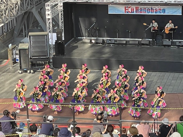 | クリックで拡大します | Aloha Summer Festival in Osaka 2019 真夏なみの日差しの強さでしたが、カラッとしていて 早めの出番だったので気持ちよく踊る事が出来ました。 Hawaiian Liveでは大好きな曲 Kamaka Kukona の ”Hanu'A'ala"を生で聞くことが出来て幸せでした。 ”Hanu'A'ala"は私達が実際にマノアに行って、そこで 振リ付けを考えた思い出の曲です。 |