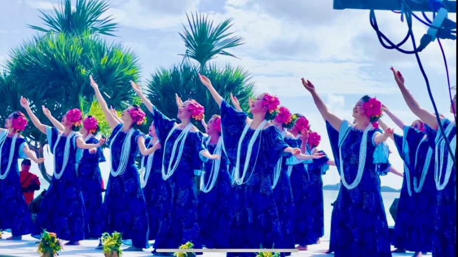 | 沖縄マカヒキフェスティバル2024 2024年10月26日(土) なかなか全クラスに声かけが出来ないのが申し訳なかったですが、今回40数名で沖縄の美らSUNビーチで行われたMakahiki Festivalに参加して来ました。 台風の心配とか有りましたが幸い好天に恵まれて、 昼の部、夜の部と3曲踊ってきました。 海辺で生Bandの演奏でとっても気持ち良かったです。出演の後は至近のレストランKAIを貸し切りで、 メレフラ等大いに盛り上がり楽しい1日でした。 |